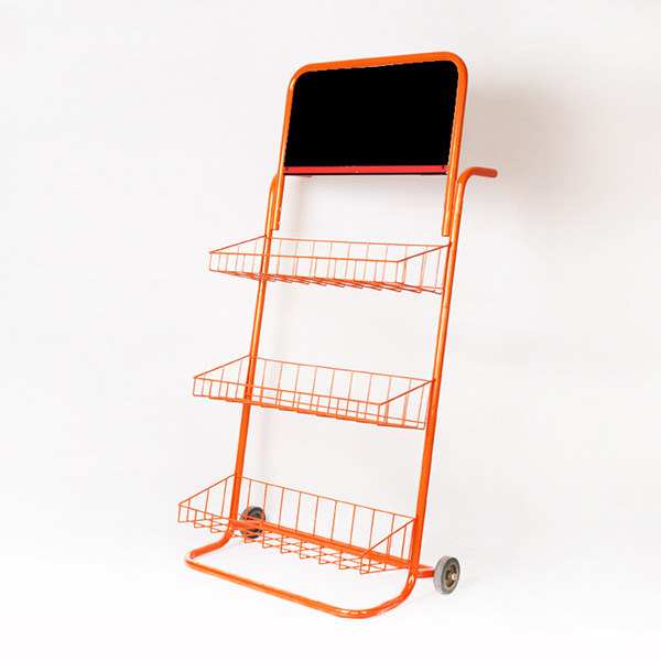 กำหนดเอง 3 ชั้นร้านค้าปลีกชั้นวางซุปเปอร์มาร์เก็ตรถเข็นโปรโมชั่น